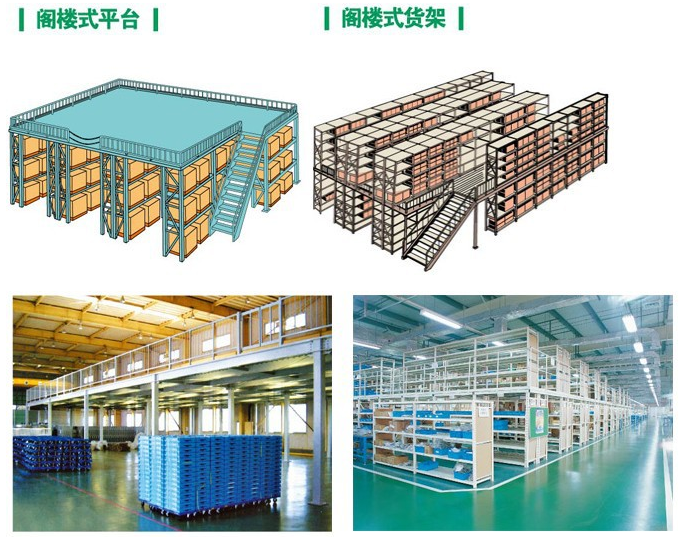 閣樓平臺貨架一般承重300-1800kg/平方米;采用升降機或叉車上下送貨和人工揀選方式作業(yè)。