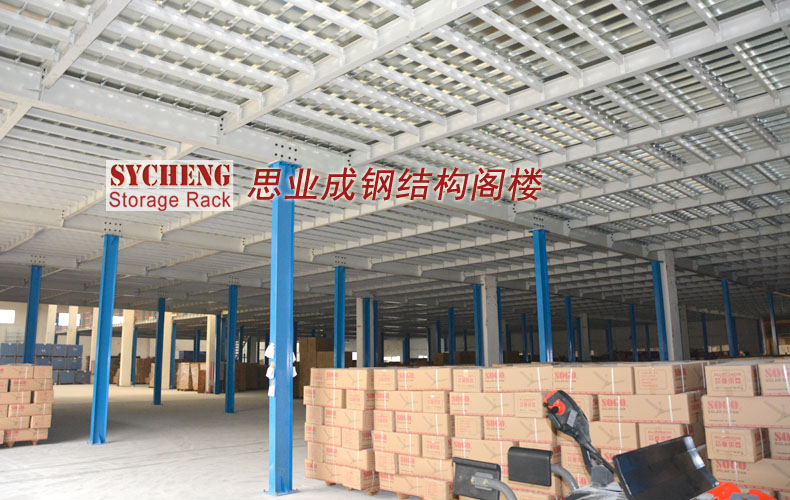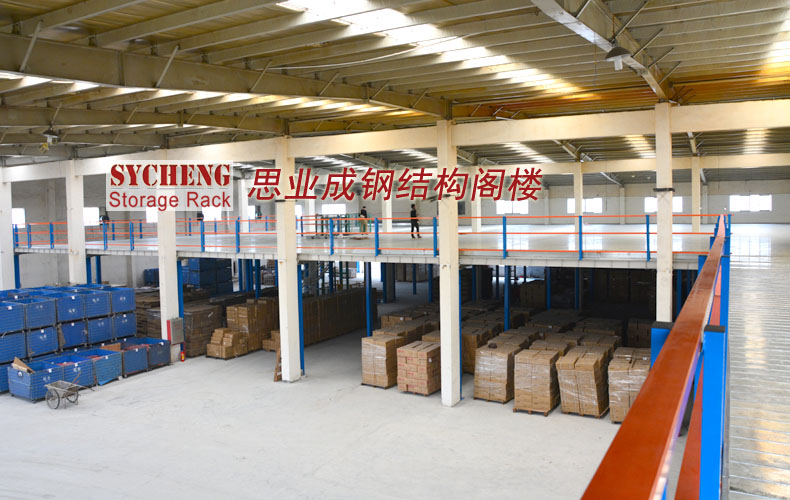 :一樓圓管/方管做立柱支撐,二層為平臺;適用于庫房較高,堆放較密集的情況。(一般為托盤平地碼放)一樓叉車/堆高車存取,二樓人工/搬運車存取的情況。可配合升降平臺使用。