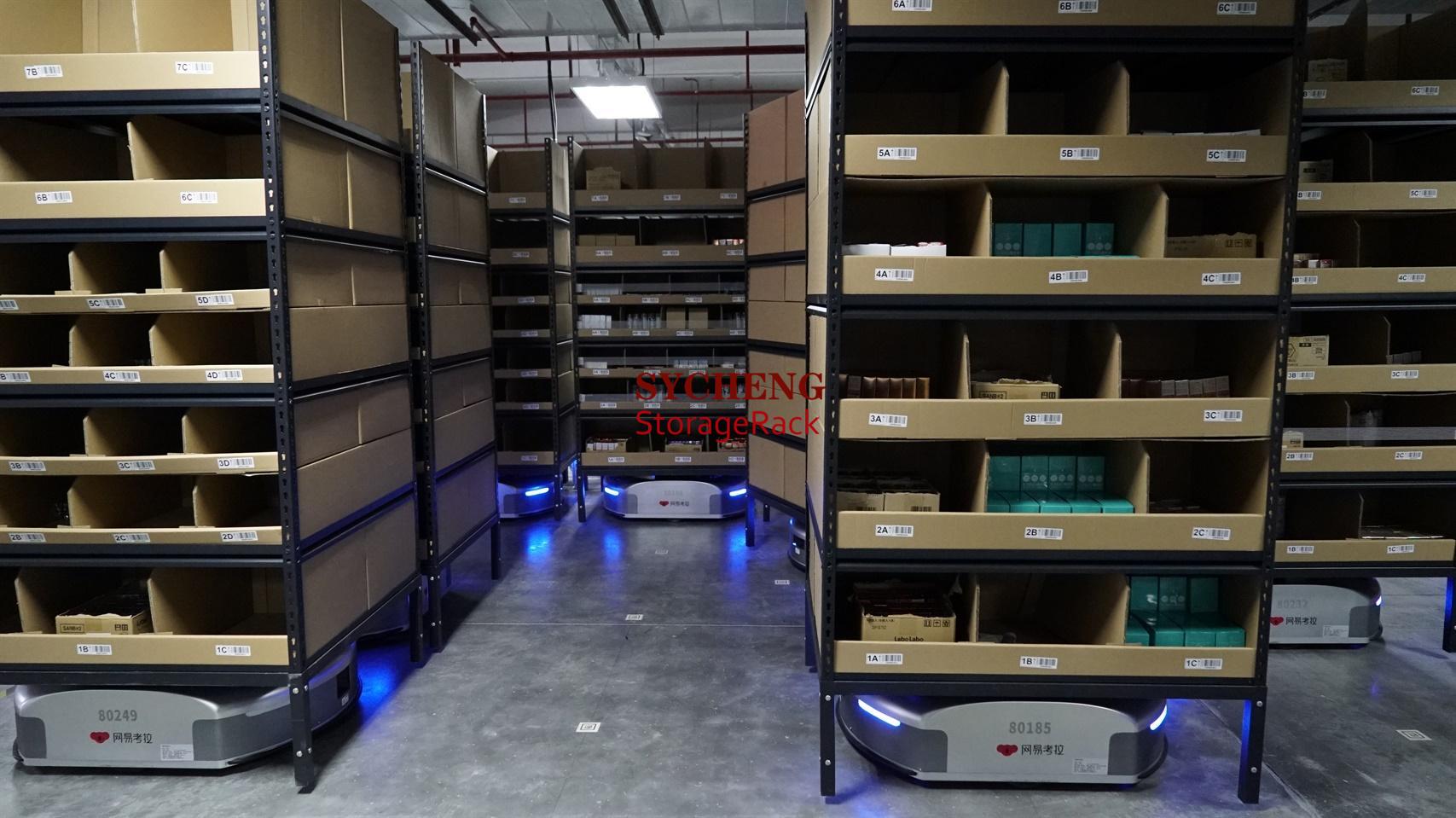 運送作業臺,完成揀選后再將貨架送回原來的位置。這樣商品的揀選不再是人追著貨架跑,而是由